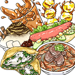 Lineスタンプ 台湾夜市美味しい食べ物 Vol 1 32種類 1円